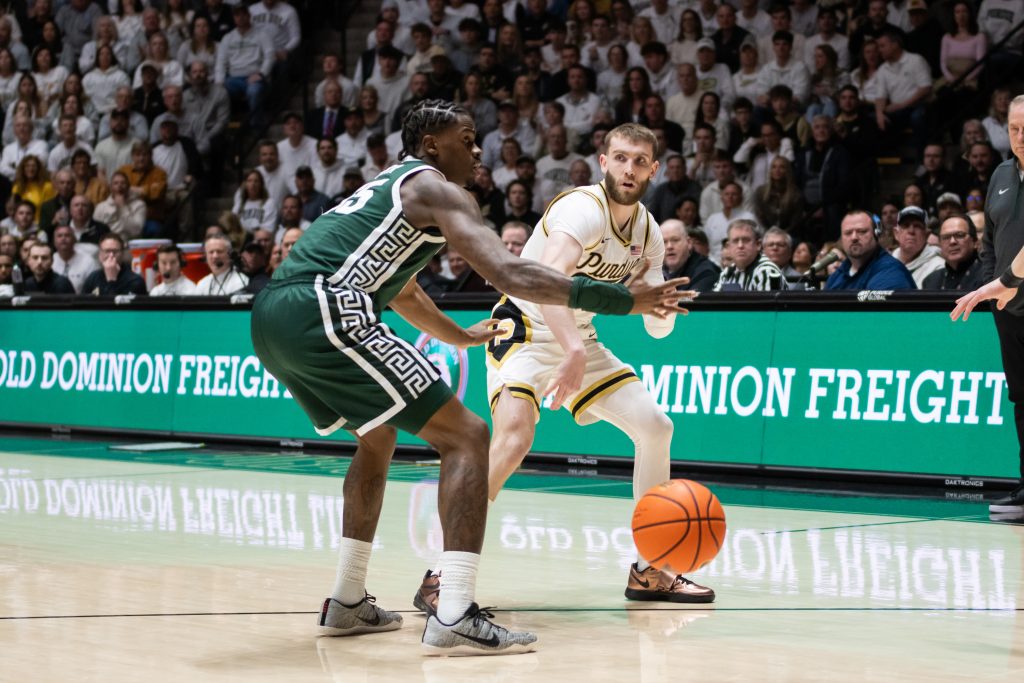 In a tightly-constested game, Purdue had two opportunities in the closing seconds to tie or take the lead, but fell short in both attempts. Trey Kaufmann-Renn missed a short jump-hook shot that would have tied the game with 8 seconds left. Purdue had one more chance with an out-of-bounds play with 3.4 seconds, but Braden Smith’s game-winning long 3-point shot was slightly off the mark at the buzzer.