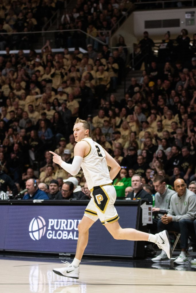 Trailing 63-62 with 51 seconds left in the game, Fletcher Loyer hit the most crucial shot of the game with a long NBA-range three from the top of the key to put Purdue back in the lead. Purdue never trailed from that point on.