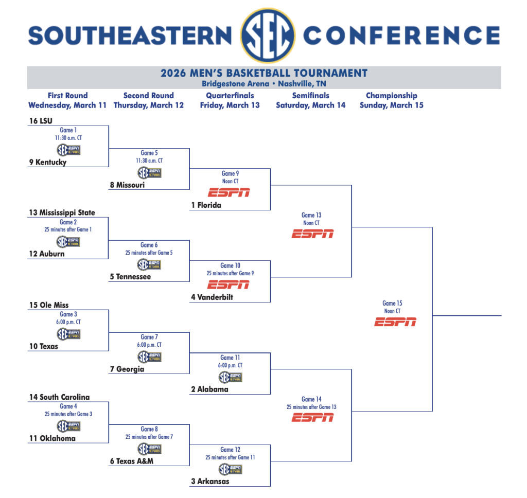 The SEC conference is very competitive. Florida is the 1 seed. Several teams are looking to add to their resume with a few wins